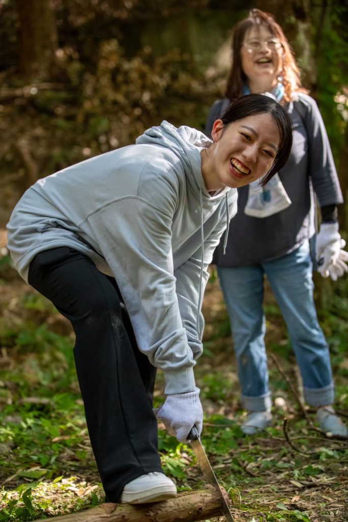 ウバメガシは、海岸部の公園でBBQ用の炭として販売されるとともに、山間部のキャンプ場において薪として販売されます。炭や薪として利用するという出口戦略があります。また森林、自然の中での活動自体が、五感を刺激、憩いや安らぎをもたらして、都市空間におけるストレスからの解放、リラックスできるという効果発揮にもつながります。